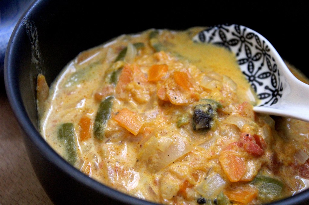 Esta receita de tacho é muito cremosa e rica em sabores exóticos e quentes da Índia. Muito saudável também, já que só leva vegetais, e acima de tudo, reconfortante!
