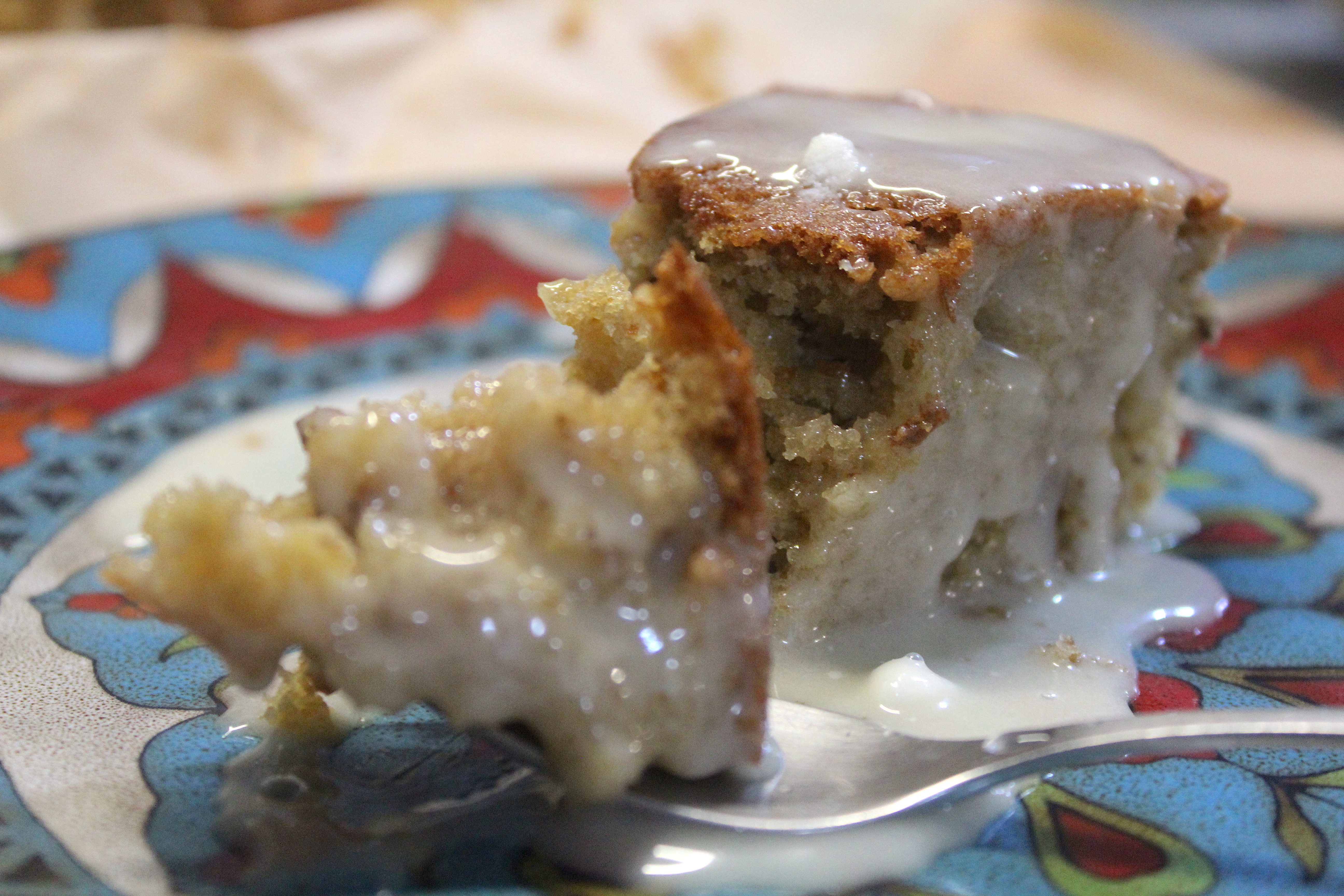 - For last, let the cake cool down complelty and pour the previous mix over the cake.